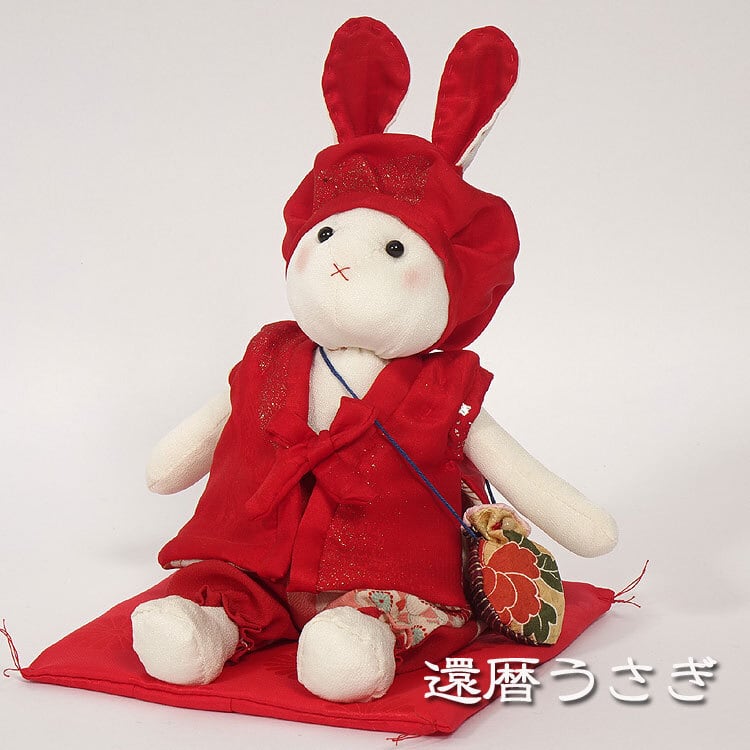 ハンドメイド 還暦うさぎ H00001 還暦 プレゼント うさぎ 着物地 ぬいぐるみ handmade【ハンドメイド】